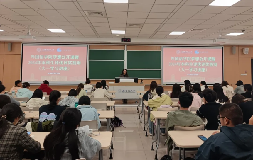 姚灵珑邀请大一学生一同观看优秀学长学姐的答辩过程,指导同学们如何制作更具有吸引力和展示力的PPT,并鼓励大一的同学们向学长学姐们学习,展示成人漫画 学子风采。