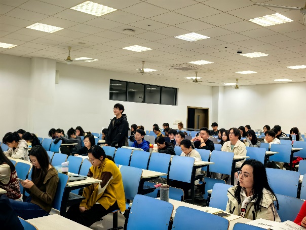 最后,王美姝聚焦当下,针对信息技术最新发展、机器学习等话题,与同学们展开了深入探讨。她认为,在信息技术辅助阅读中,同学应注意辨别信息来源的可信度和内容的质量,培养自己独立思考和分析能力,并科学安排时间,将信息技术用作辅助英语学习的工具,形成良好的英语学习习惯。
