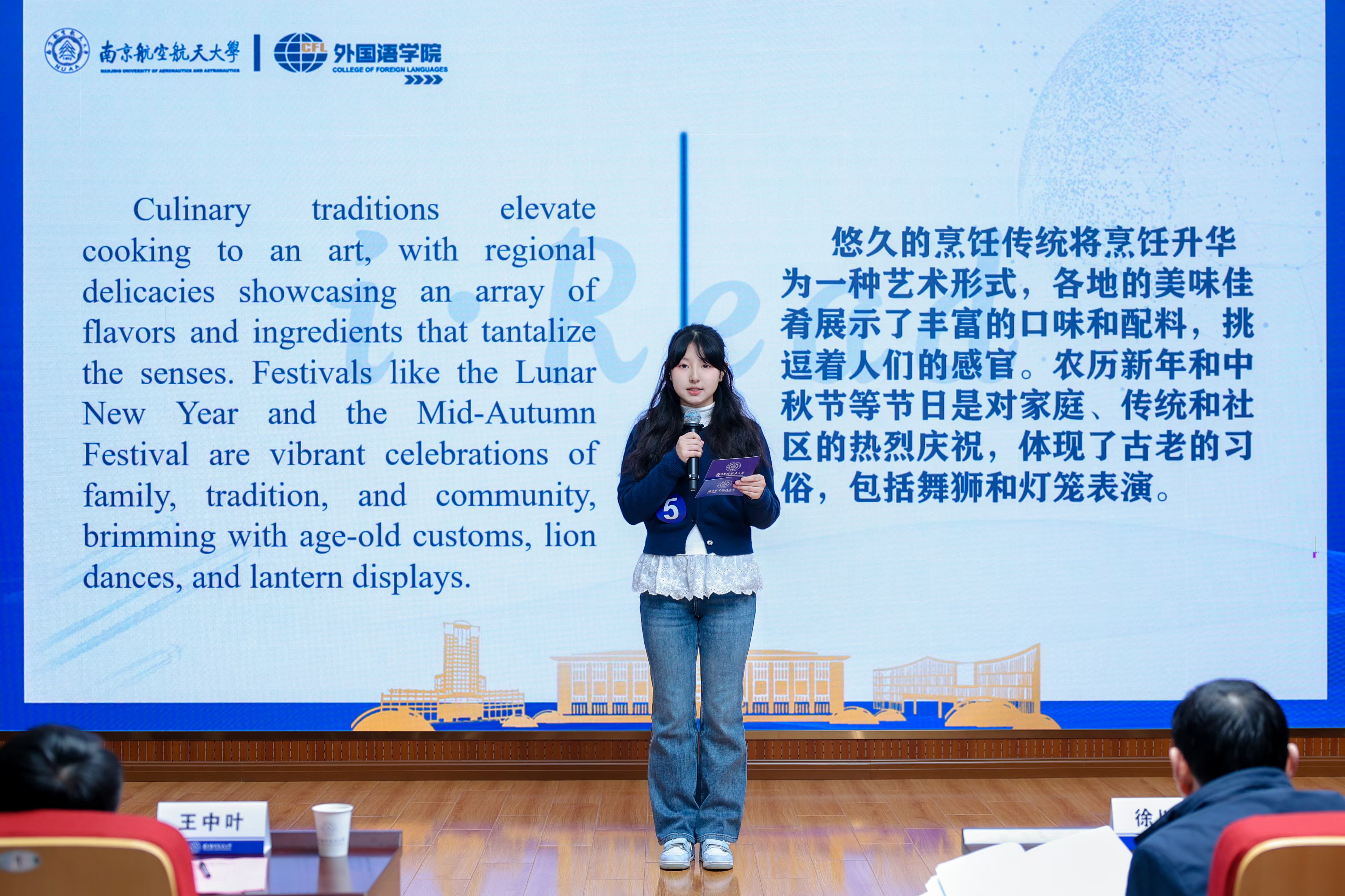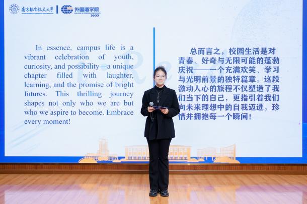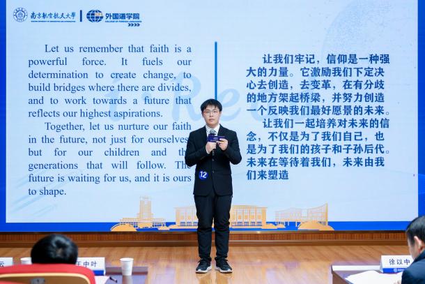本次大赛以 “外语赋能高质量发展”为主题,跨越两轮赛事,历时1个月,共有来自校内18个学院的1000多名选手参加比赛。经过初赛的激烈角逐,共有来自8个不同专业的12位佼佼者进入决赛。决赛日的舞台上,选手们意气风发,表达流畅自如;舞台下,各位嘉宾评委和同学们沉浸在这场双语盛宴中,掌声不断。