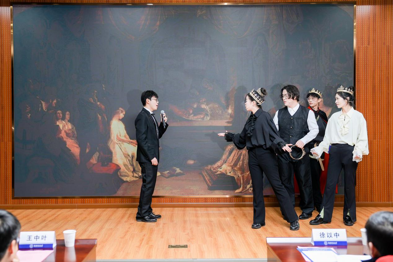 在激烈的竞技之外,来自艺术学院的开场表演《唐璜》选段细腻动人、来自成人漫画 的中场表演《哈姆雷特》二创选段巧妙新颖、终场表演《友谊地久天长》的中、英、俄、法、日多语种联唱也唤起在座嘉宾评委和同学们的美好回忆,愿共同铭记当下的难忘时光。三场表演创意满满、诚挚动人,收获了现场观众们的欢呼和点赞。
