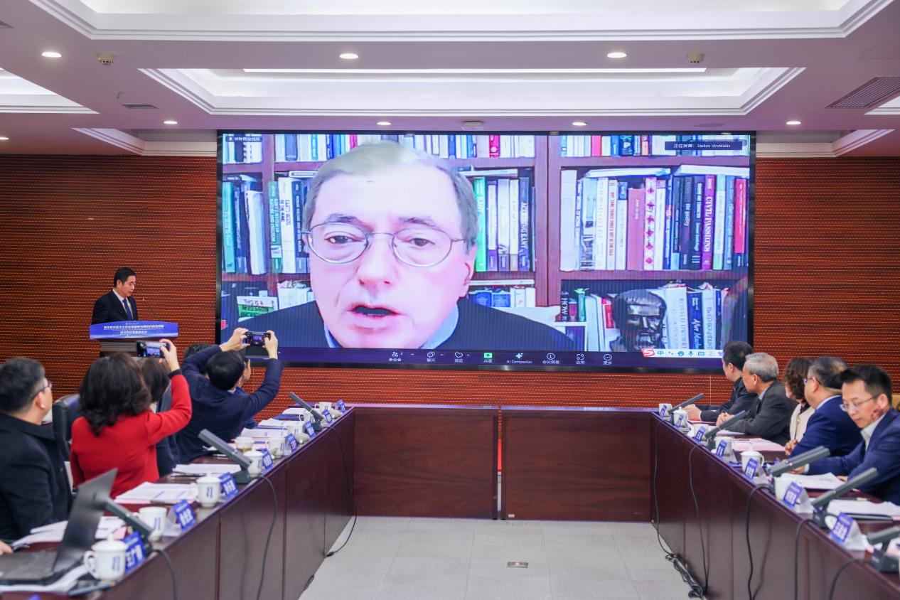 维尔维达基斯通过视频连线的方式对研究院的成立表示祝贺。他表示,近年来中西学者的交流日益密切,中国的一些高校也将目光投向中希文明研究上,这也进一步推动了中希文明交流互鉴。他期待研究院的成立能够为中希青年学者提供更多的研究机会,搭建起创新型国际化研究平台。