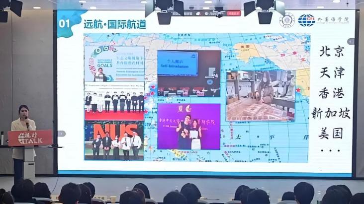 在本次“视野TALK”榜样分享会的现场,曹璐老师和朱芷苑学姐都为我们分享了具体的出国访学和国际组织实习经历,包括各种申请渠道与需要准备的材料。她们的分享让我意识到,外出交流的意义不仅在于学习知识,更在于打破文化壁垒,学会用多元视角看待问题。整场分享会最动人的,是不同讲述者身上闪烁的共同特质:敢于突破舒适区的勇气。这次分享会给予我的不仅是经验地图,更是一颗破除迷茫的种子。"语言人的终极浪漫,是让世界听见更多元的声音。"