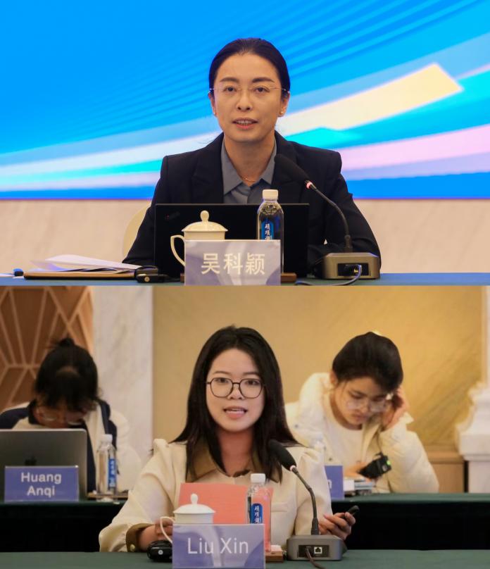 吴科颖受邀发言,介绍了成人漫画 及成人漫画 为推动乡村振兴开展的相关工作,并就未来在深入支持国家乡村振兴战略体现学校师生使命担当等方面,明确了思路举措。刘欣作为青年学生代表,汇报了学院立足专业、扎根农村,致力于用电商直播助农、用双语讲述中国故事的系列工作。