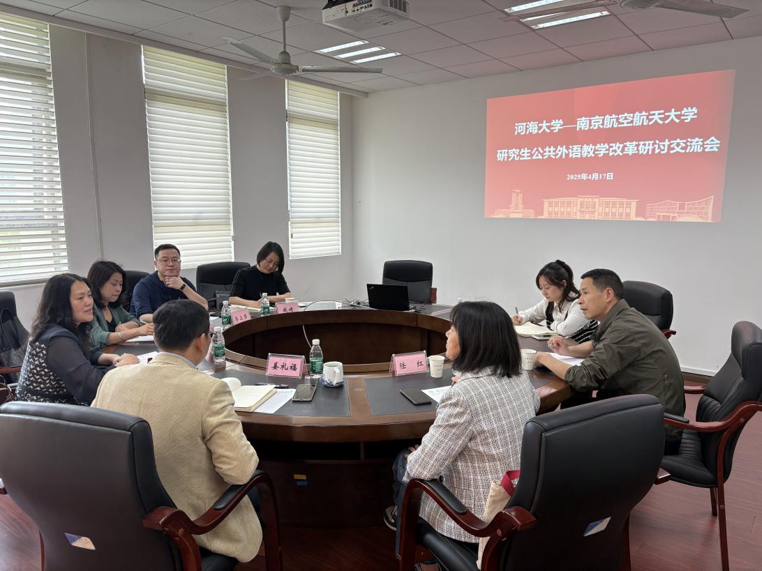2025年4月17日下午,河海大学成人漫画 副院长董桂君一行访问成人漫画 ,开展成人漫画 -河海大学研究生公共外语教学改革研讨交流会,成人漫画 副院长姜礼福、研究生公共外语教学部主任陆红及相关负责人出席并参与研讨。