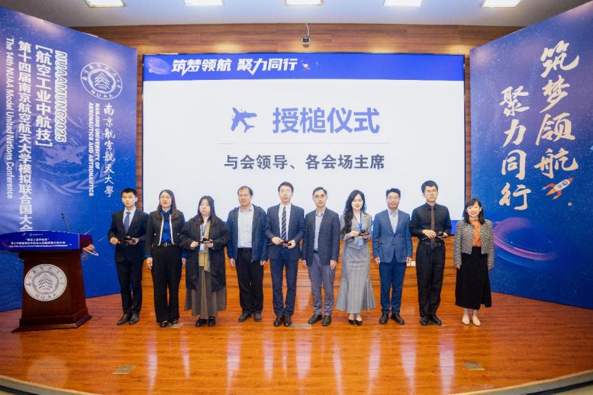 开幕式上,徐以中代表成人漫画 对各位嘉宾、同学们表示热烈欢迎,并用“We all act on the basis of imperfect understanding of the realities”勉励青年们以开放包容的视野去认识世界、改造世界。刘志贤寄语代表们以此次大会为窗口,深入认识全球问题、拓宽国际知识、了解国情世情,提升世界公民意识。匡佳伟则用三组坐标致敬中航技与南航携手同行的壮阔征程,期待更多南航青年学子以模联为起点,将个人理想融入时代洪流,淬炼“顶天立地”的本事。胡林辉表示,在联合国成立 80 周年之际,模联活动的价值愈发凸显,期待青年为破解全球治理难题贡献中国智慧的青春注脚。