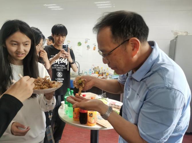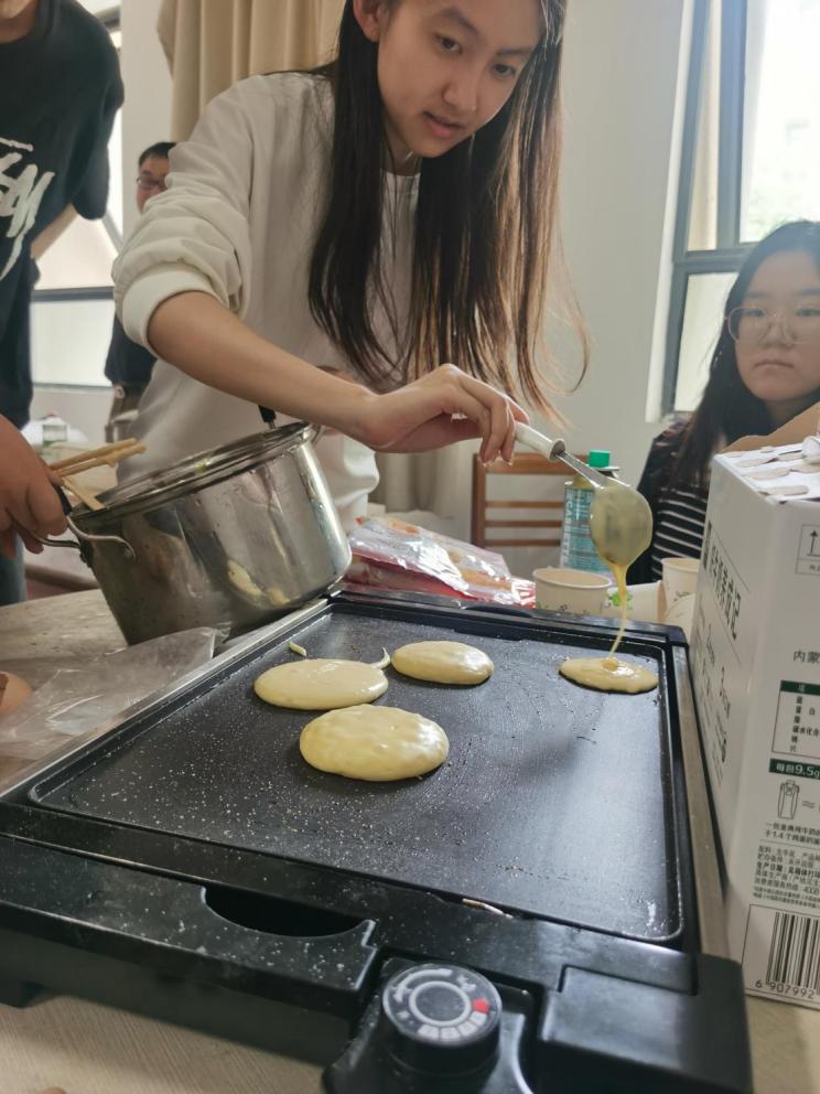 在大家的协作下,一张张色泽金黄、香气扑鼻的大阪烧被端上桌,松软香甜的松饼也接连出炉;同学们还制作了创意作品。日语系老师和学院其他系部老师也来到现场,与同学们围坐一堂,边品尝美食边交流学习和生活的趣事。大家在轻松欢快的氛围中加深了对日式饮食文化的理解,增进了彼此之间的情感联系。这顿亲手制作的午餐,不仅滋养了味蕾,也温暖了心灵。