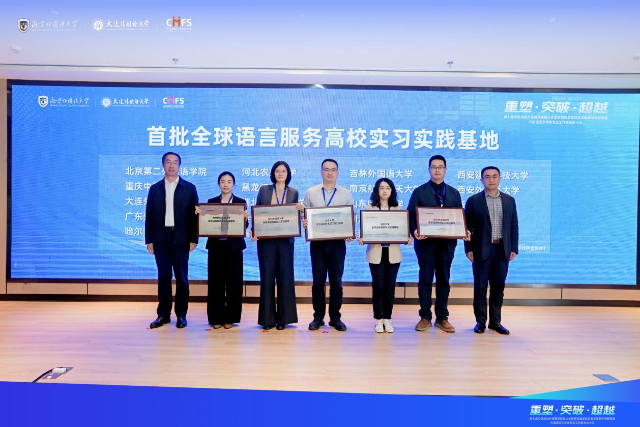 大会由中国高校外语慕课联盟、虚拟仿真实验教学创新联盟外国语言文学类专业工作委员会共同主办,北京外国语大学、大连外国语大学联合承办,北京外研在线数字科技有限公司协办。大会主论坛中,首批“全球语言服务高校实习实践基地”名单正式发布,南京航天航空大学入选。