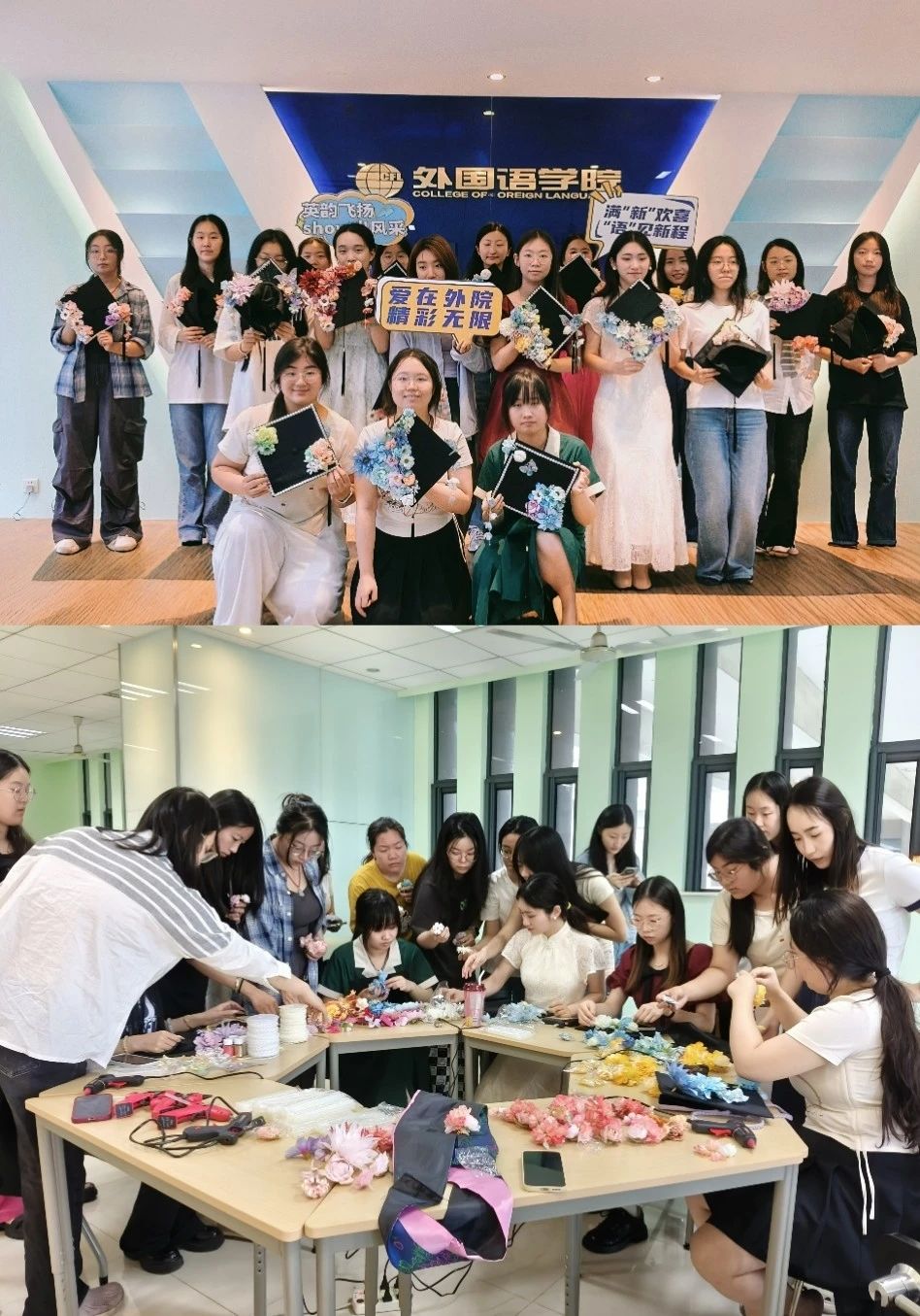 6月12日,成人漫画 开展“簪花缀梦・锦绣前程”毕业季非遗体验活动,2021级本科毕业班学生积极参与了本次毕业季活动。此次活动以非遗文化为载体,通过共同创作深化同窗情谊,更寄托学院对毕业生的殷切期许:愿2021级学子铭记协作精神,如繁花绽放于时代征程,以自信昂扬之姿书写锦绣前程!