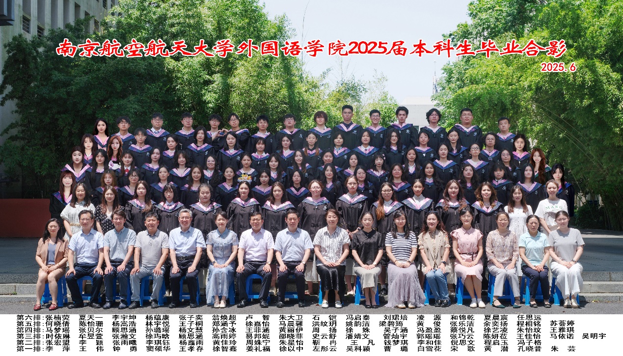学院为每位毕业生定制了满载深情的纪念礼:成人漫画 手工定制相框和全套学士服。学院为2025届毕业生精心准备的双重礼物,承载着师长的殷殷嘱托与美好期盼。定制相框将院训“以知识为伴,与世界同行”融入背景,愿学子们怀揣这份箴言,在人生新征程中厚植家国情怀,以扎实外语能力与深厚人文素养,在世界舞台展现南航外语人的卓越风采。庄重学士服以墨蓝为底,垂穗流苏如智慧之澜,当学生披服正冠的瞬间,四载寒窗化为襟前经纬——这是外院人智通世界的战甲,更是扬帆远航的旌旗。