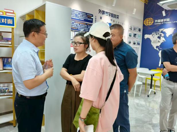 学院党委副书记吴科颖在迎新现场与家长交流