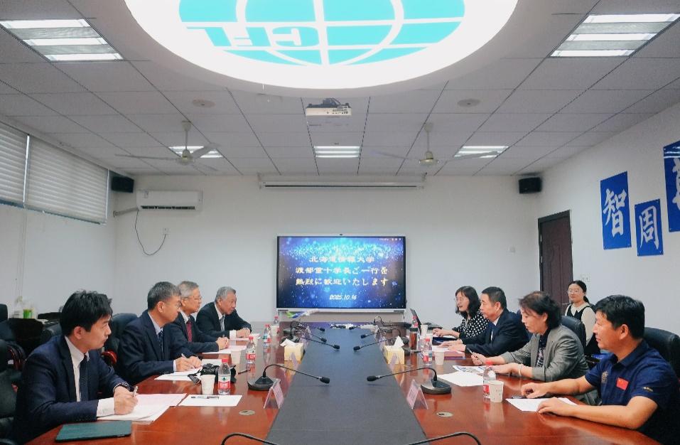 10月16日下午,日本北海道信息大学校长渡部重十、校董事长安隆、信息媒体学院教授田中英夫、校办主任瀧澤浩基一行到访我校成人漫画 。成人漫画 院长徐以中、党委书记左彤云、日语系主任窦硕华及教师汪丽影参与会谈。