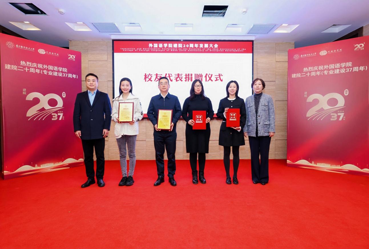 长期以来,校友们不仅在事业上成绩卓著,更通过设立奖学金、开展合作项目、提供实习就业机会等方式,持续支持学院发展。此次大会部分校友代表也带来了他们对学院的心意,南航校友总会秘书长、教育发展基金会秘书长李和新、成人漫画 党委书记左彤云上台接受捐赠。
