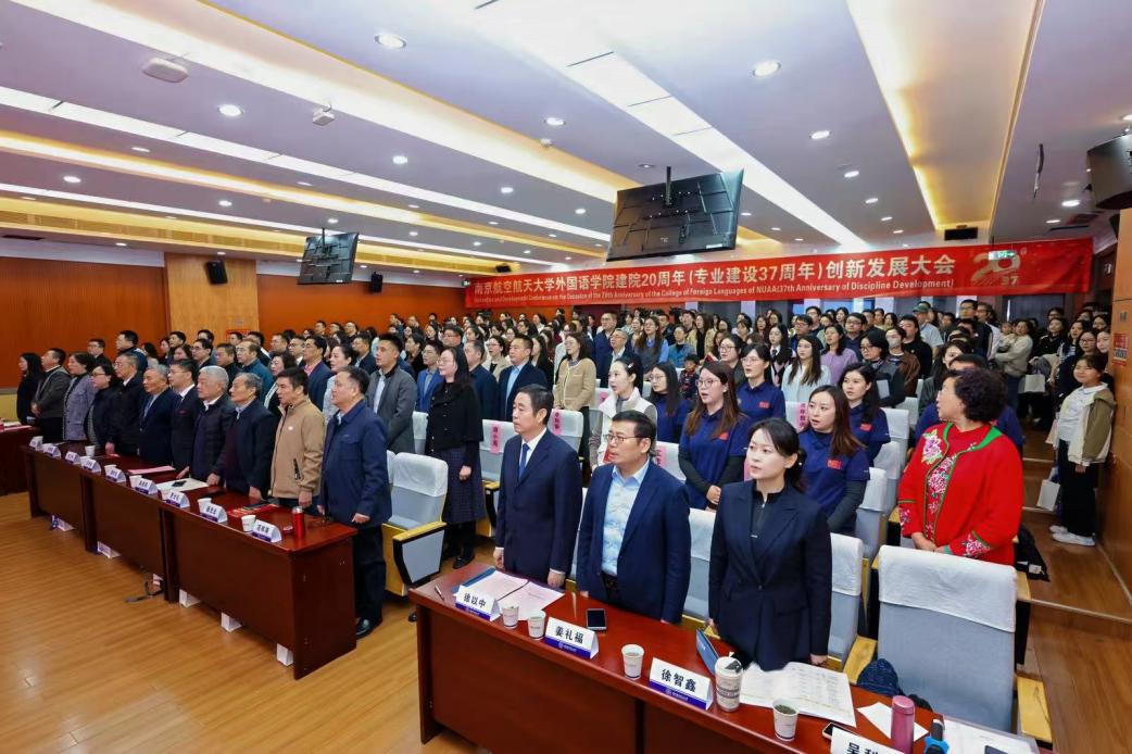 校长助理潘时龙在致辞中指出,学院植根南航沃土,从建校初期的公共外语教研室逐步发展至今,已经成为学校践行国际化战略的关键支点和人才培养体系的重要一环。展望未来,潘时龙提出三点期盼:一是坚守育人初心,强化“外语+”培养模式,培育能连通世界、服务行业的复合型人才;二是强化学科内涵,以“区域国别与国际传播研究院”为高地,深化与“三航”、低空优势学科的交叉融合,探索文理渗透的特色发展路径;三是勇担文化使命,将学术优势转化为传播能量,在推动中华文化走向世界、提升中国国际传播影响力中展现南航外语人的担当。